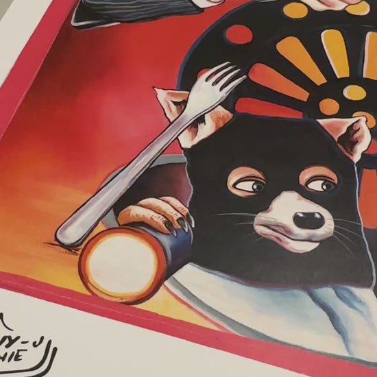 Action packed rendition of Wes Anderson’s Fantastic Mr. Fox originally painted by the great Ghanaian artist Heavy J.